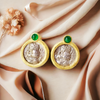 Lion Ancient Greek Coin Medallion 18K Gold Diamond Earring (Item No. COIN047)